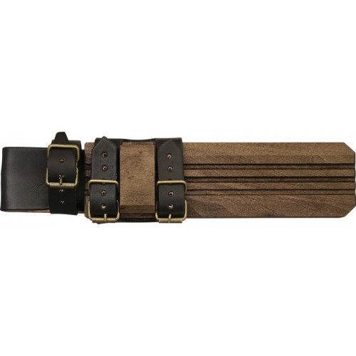 10 1/4" overall. 4 3/4" SRK-8 high carbon steel blade with polished Tsuchime finish and engraved design. Magnolia wood sheath with black leather buckle style closure.