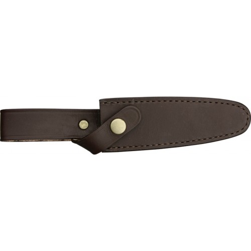 Kanetsune Sabaki-2. 9 3/4" overall. 5" SRK-8 high carbon steel blade. Magnolia wood handle. Brown leather belt sheath.