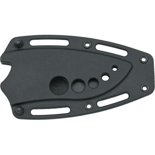 7 7/8" overall. 3" partially serrated black coated 420HC stainless blade. Full tang. Rubber handle. Black molded plastic belt/boot clip sheath.