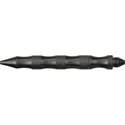 Misc Kubotan. 5 1/4" overall. Textured black aluminum housing. Unscrews to reveal 2 1/2 stainless blade.
