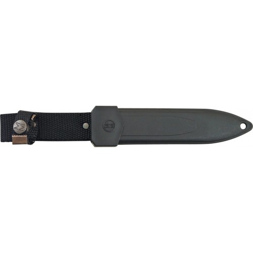 10 3/4" overall. 6 1/4" 420C stainless sawback bowie blade. Finger groove OD green composition handles with black guard and pommel. Black polypropylene and cordura belt sheath.