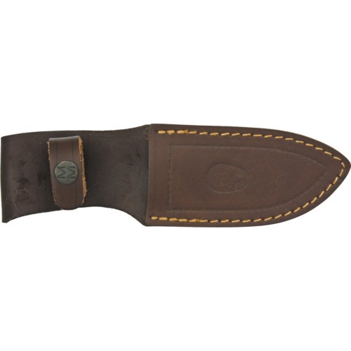 Muela Viper. 8 3/4" overall. 4 1/4" 440 stainless guthook blade. Round design stag handle with brass finger guard. Brown leather belt sheath.