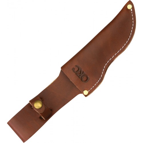 9 1/4" overall. 4 1/4" 420 stainless blade with brushed finish. Brown ergonomic handle with orange trim. Handle has a polypropylene under mold with Kraton® overmold. Brown leather belt sheath.