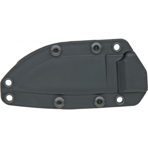 Black sheath. Partially serrated edge. 7 7/8" overall. 3 7/8" black powder coated 1095 carbon steel blade. Full tang. Green canvas micarta handles. Lanyard hole. Molded black Blade-Tech sheath can be adapted to common military applications. Sheath comes standard with a Tek-Loc and a boot clip and can be carried left or right handed. May also be worn as a neck knife.