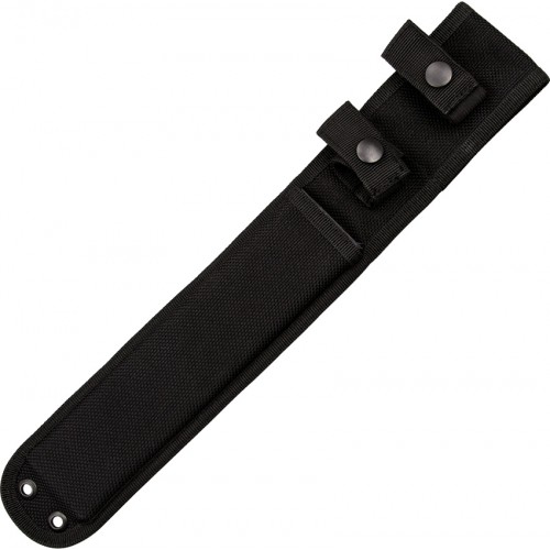 Combat Survival and Egress Knife. 14" overall. 9" 1075 high carbon steel blade with black powder coating. Full tang. Grooved black G-10 handles. Black nylon belt sheath. Bulk packed.