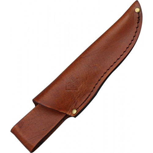 Puma SGB Elk Hunter. 8 3/8" overall. 4" blade. Full tang. Wood handles. Brass finger guard. Inlay shield. Black nylon belt sheath.