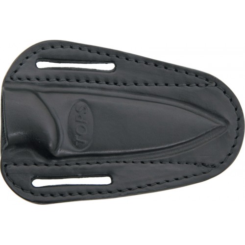 Tops UTE XL (Utility Tool Edged). Spear point blade. 8 3/4" overall. 4 1/8" blade. 1095 high carbon steel blade with tactical gray finish. Full tang. Black linen micarta handles. Black leather belt sheath.