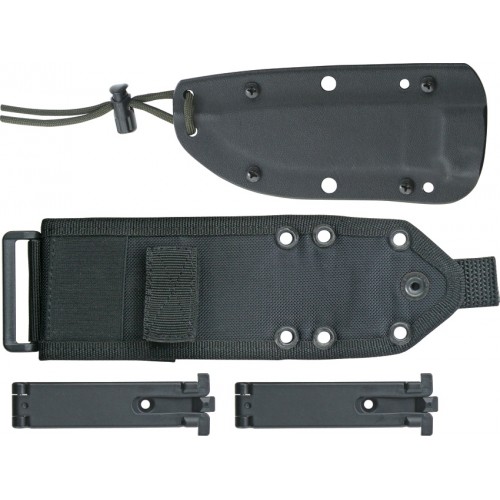 9" overall. 4 1/2" 1095 black high carbon steel finish partially serrated blade. Black linen micarta handles. Knife only.