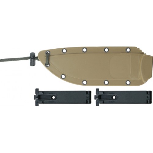 11 3/4" overall. 5 3/4" black finish partially serrated 1095 carbon steel blade with partially sharpened top edge. Full tang. Black linen micarta handles with rounded pommel and lanyard. Black molded sheath with lanyard, cord lock and boot clip with clip plate.