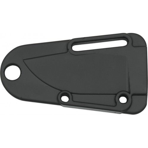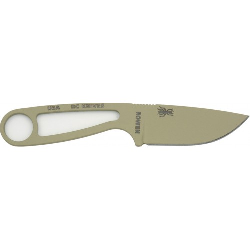 6 1/4" overall. 2 1/2" drop point blade. One piece 1095 high carbon steel construction with desert tan powder coated finish. Skeletonized handle with ring pommel. Black injection molded sheath with lashing holes. Includes survival information card.