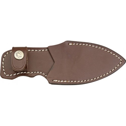 Fox Parong Karambit 8 3/4" overall. 4" N690Co cobalt vanadium stainless blade. Full tang. Olive wood handles. Ring pommel. Brown leather belt sheath.