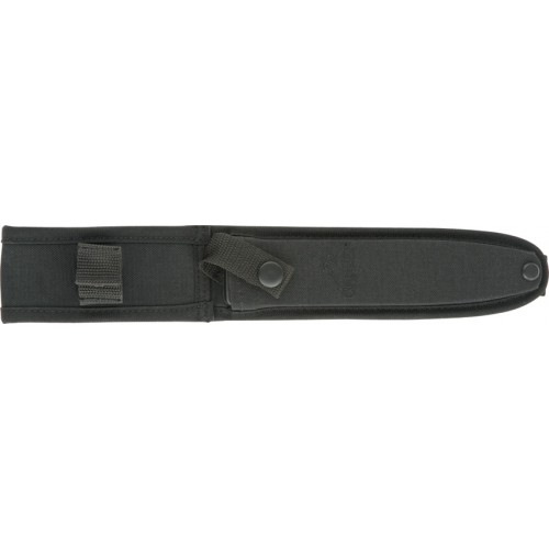 Gerber Mark II. 12 3/4" overall. 6 7/8" 420HC stainless double edge partially serrated blade with black oxide coating. Black die cast aluminum handle. Black ballistic nylon belt sheath. Serialized.