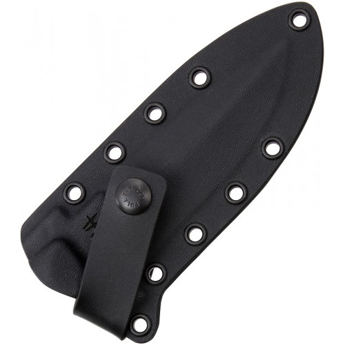 (Mid Field Knife) Series. Designed to perform demanding or intricate cutting chores and offers extraordinary penetration power. 9 1/8" overall. 5" D2 tool steel drop point blade with black Teflon coating and sawback. Integrated guard. Full, extended tang with glass breaker/hammer combo pommel. Lanyard hole. Textured, contoured black G-10 handles. Black Kydex scabbard with MOLLE lock and TecLok.