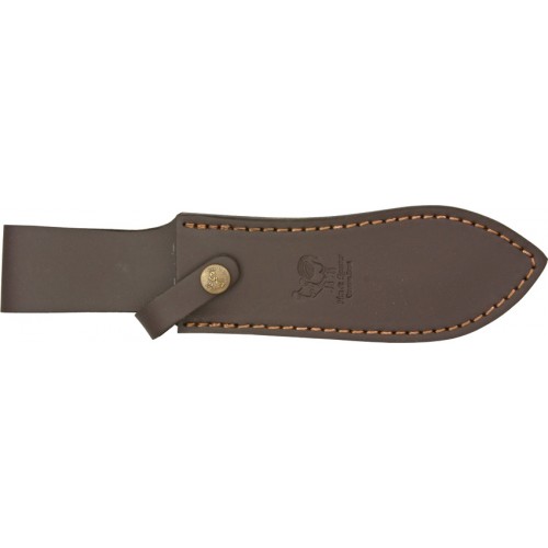 H&R Bowie. 10 5/8" overall. 6" stainless blade. Full tang. Genuine deer stag handles. Nickel silver finger guard. Brown leather belt sheath.