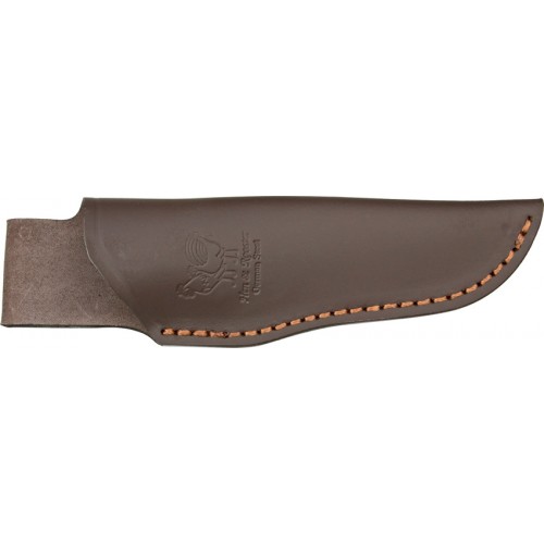 7 5/8" overall. 3 3/8" German stainless drop point blade. Full tang. Fingergrooved green stag handles. Lanyard hole. Embossed brown leather belt sheath. Made in Spain.