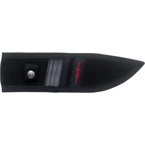 Hibben Large Thrower Triple Set. Generation 2. Includes three GH-2003 in a sheath designed to hold them all. Each knife is 8 5/8" overall with 4 5/8" blade which is 3/16" thick. Designed by Gil Hibben, Master Knifemaker. These are updated designs of the original Hibben Throwers. Constructed of one-piece, tempered stainless steel. They feature ergonomic handle designs that guide the hand into the same consistent and accurate release each time they are thrown. Each comes with black nylon belt sheath with reinforced liner and color Hibben Knives patch.