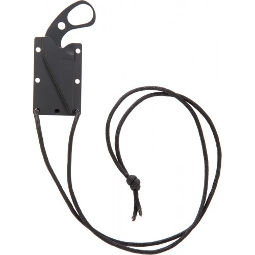 Law Enforcement Knife. 3 1/2" overall. 1 3/4" blade. One piece black powder coated 9Cr18 stainless construction. Overall profile is no larger than a credit card. Molded black composition sheath. Black cord tie included.May be laced in boot, pinned inside a belt or lapel or used as a neck knife. Hang packaged.