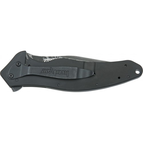4 1/2" closed framelock. Speed-Safe assisted opening ladder damascus steel blade. Black Tungsten DLC coated 410 stainless handles. Reversible stainless pocket clip. Lanyard hole.