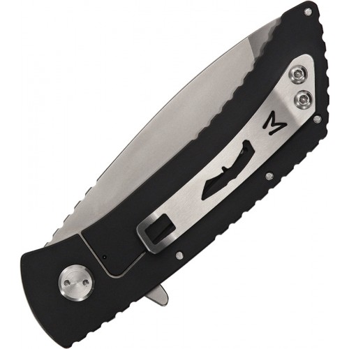 Medford TFF-2 Folding TF Series Adaption. 5 5/8" closed framelock. 3 7/8" NP3 finish D2 tool steel hybrid recurve tanto blade with thumb ridge, QuickCam™ and MKT maker's mark. Black titanium handles. Titanium pocket clip with cutouts of MKT maker's mark, knife silhouette and diagonal slot. Black composition case with foam lining, snap closures, lanyard hole and black nylon lanyard.