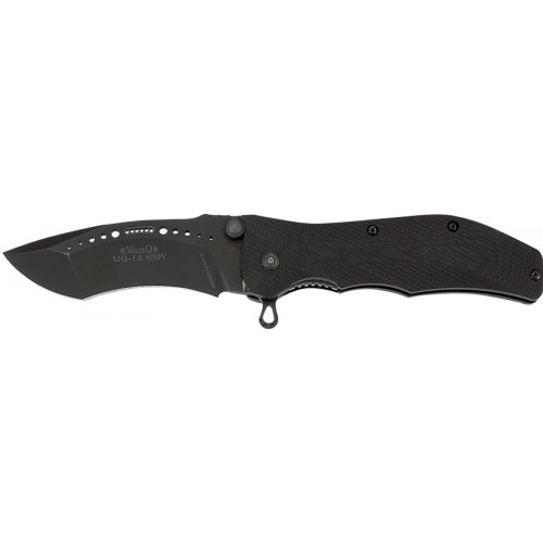 Assisted Opener. 4 1/2" closed. Black finish, standard edge assisted opening blade with dual thumb studs. CNC machined black G-10 handles. Stainless pocket clip. Designed by Darrel Ralph. Hang packaged.