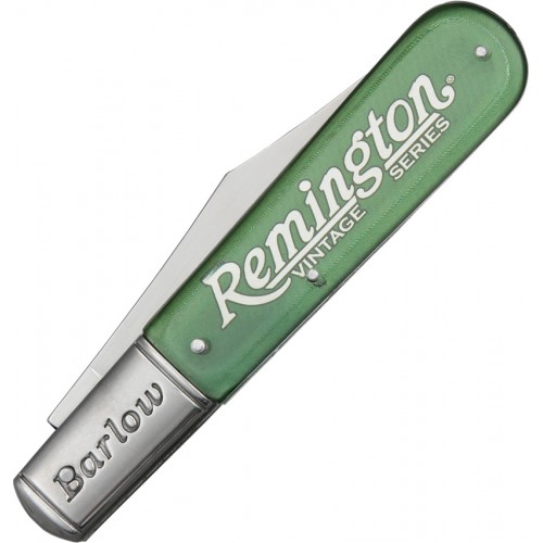 UMC Bobcat Surprise. Vintage Series. 5" closed. 3 3/4" stainless clip blade. Clear acrylic handles with full color art inserts depicting vintage Remington advertising. Stainless bolster with Remington logo.