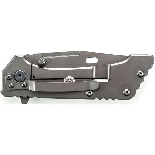 Schrade Heavy Duty Tactical Framelock. 5 1/8" closed. 3 1/2" partially serrated 9Cr18MoV high carbon stainless tanto blade with dual thumb studs, lashing holes, and extended tang. Titanium coated stainless handles with thumb ridge. Smooth front handle. Titanium coated stainless pocket clip.