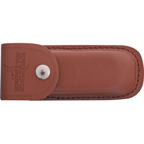 Schrade Uncle Henry Bear Paw. 5" closed lockback. Stainless clip blade. Wood handles with brass bolsters. Brown leather belt sheath.