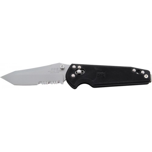 3 7/8" closed. VG-10 stainless partially serrated tactical design tanto blade with ambidextrous thumb studs. Black Zytel handles with lanyard hole. Arc-Lock permits one hand opening and closing. Removable clip for a variety of carry options.