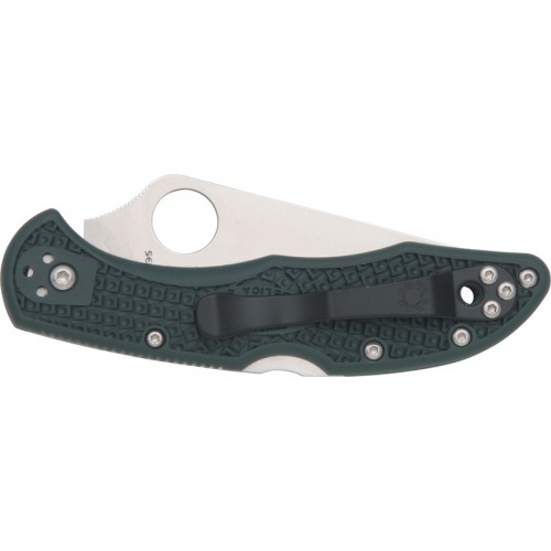 Spyderco Delica 4. 4 1/4" closed lockback. ZDP-189 stainless blade with thumb hole pull. Dark green FRN handles with black coated stainless pocket clip.