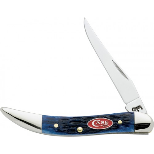 610096SS pattern. 3" closed. Stainless long clip blade. Navy blue jigged bone handles with bright red Case logo shield and nickel silver bolsters.