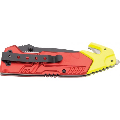 4 1/2" closed. 3 1/2" matte finish stainless blade with dual thumb studs and extended tang. Matte finish stainless frame with textured black G-10 onlay handles. Lanyard hole. Matte finish stainless pocket clip.