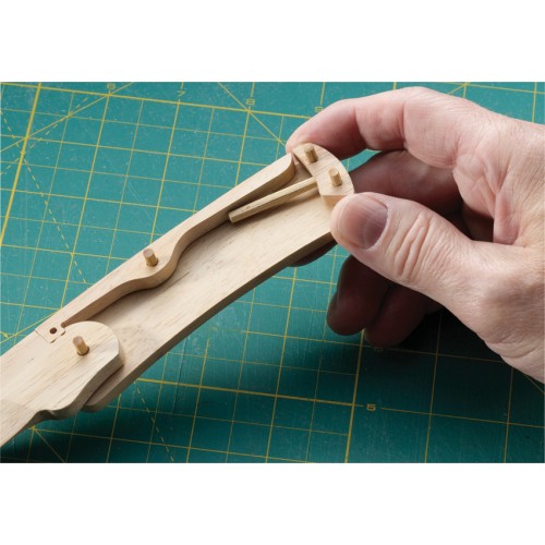 4 3/4" closed. 3 1/2" blade. Made from softwood, hardwood and bamboo. All parts shaped with safe rounded edges. Ready to assemble without tools. Press fit or permanent assembly options. Teaches mechanical and woodworking skills. When assembled, the model operates exactly like a lockback folding knife, teaching the principles of levers, springs and locks. Complete detailed instructions included. It makes a fun and educational craft project for a parent, grandparent or mentor and children seven years of age and older. Klecker design. Hang packaged.